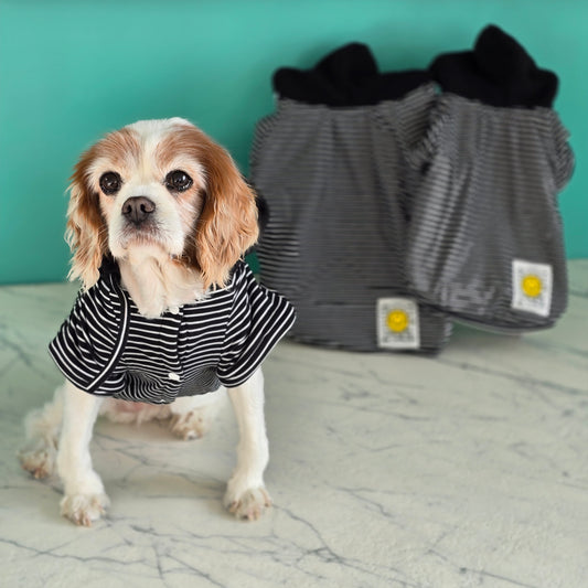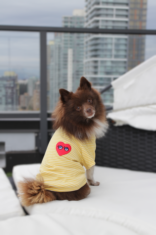 Striped Dog T-shirt with Heart Patch ♥ | Yellow & Pink